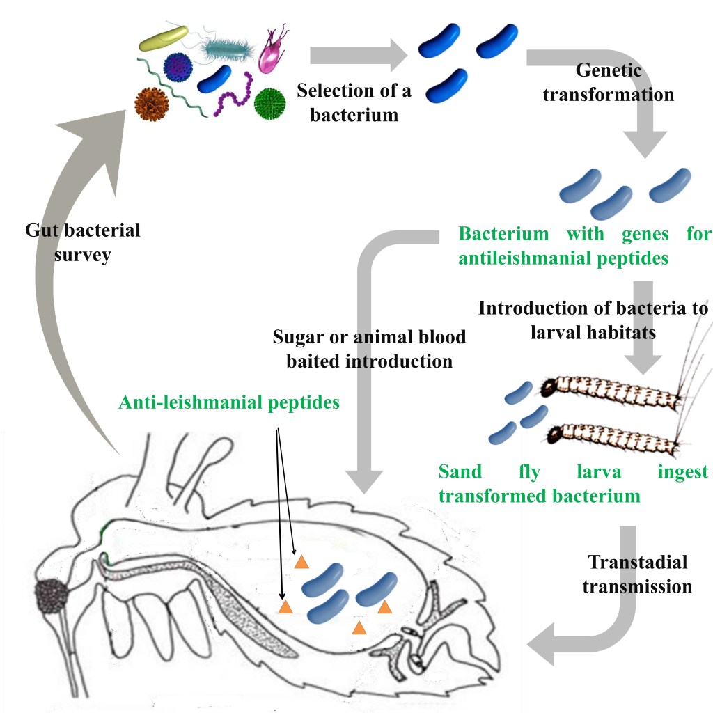 Our studies were focused on identifying proper bacterial candidates to be used in generating paratransgenic sand flies to control the vector mediated transmission of leishmaniasis.
